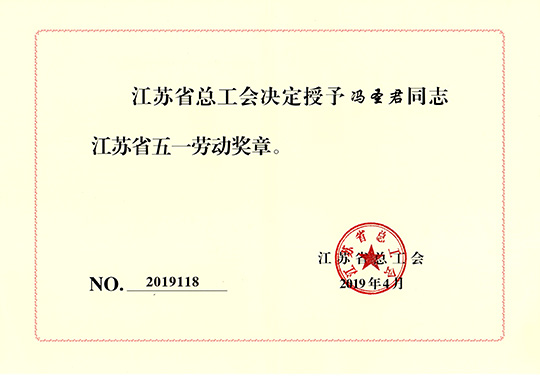 三圣集團馮圣君董事長榮獲“江蘇省五一勞動獎章”榮譽稱號