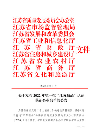“江蘇精品”是江蘇省為推動(dòng)形成一批自主創(chuàng)新、品質(zhì)高端、服務(wù)優(yōu)質(zhì)、信譽(yù)過(guò)硬、市場(chǎng)公認(rèn)的“江蘇精品”品牌群體,以行業(yè)龍頭骨干、“專精特新”和“單項(xiàng)冠軍”等企業(yè)為主體認(rèn)證對(duì)象,參照國(guó)際慣例、運(yùn)用市場(chǎng)機(jī)制,由江蘇省市場(chǎng)監(jiān)管局會(huì)同省發(fā)改委等七部門開(kāi)展的重點(diǎn)認(rèn)證工作。