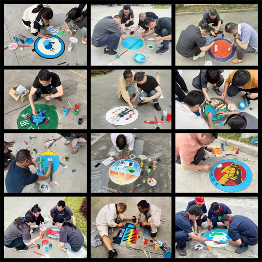井蓋,作為園區(qū)基礎(chǔ)設(shè)施的一部分,常常被人們忽視。通過井蓋涂鴉的方式,我們將井蓋變身為了充滿創(chuàng)意和個性的藝術(shù)品。通過這場活動,提升了園區(qū)的文化氛圍,更讓職工們感受到創(chuàng)作的樂趣。