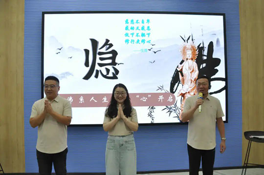 學(xué)習(xí)和運(yùn)用佛陀的經(jīng)典要義,本場活動中還穿插了互動環(huán)節(jié),就如何以智慧的方法去處理家庭關(guān)系,以及夫妻之道、教育子女等話題,活動現(xiàn)場展開了活躍的討論;同事們積極參與交流,敞開心扉,對照與反觀,獲得不少感悟。