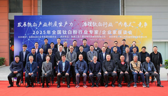 3月1日,2025年全國鈦白粉行業(yè)專家/企業(yè)家座談會,在南通三圣石墨設備科技股份有限公司舉行。來自鈦白粉產(chǎn)業(yè)技術創(chuàng)新戰(zhàn)略聯(lián)盟、全國各地鈦白企業(yè)、鈦白裝備企業(yè)、媒體等單位的代表參加了此次座談會。